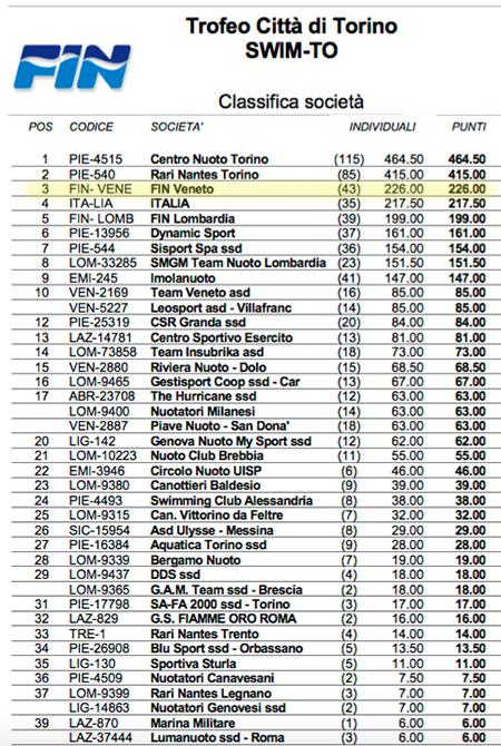 La classifica finale di SWIM-TO 2016