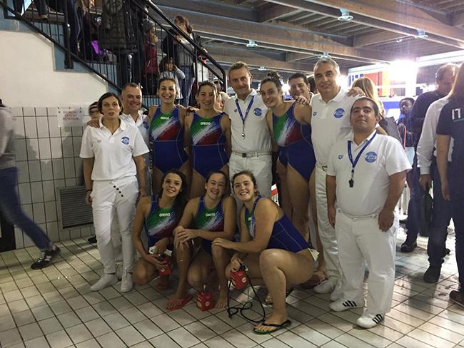 Foto di gruppo degli arbitri con le nostre azzurre